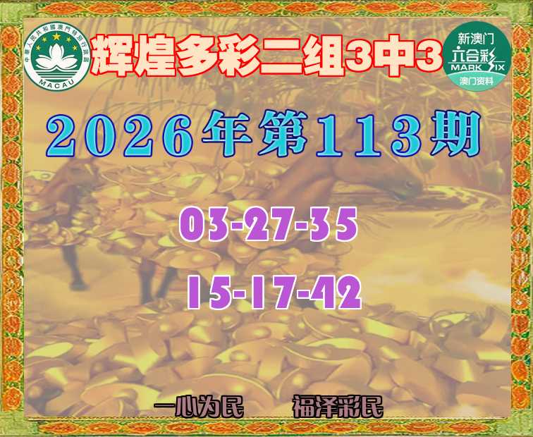 主题: 121期:一心为民 《辉煌多彩》【二组3中3】〓 火爆中奖资料