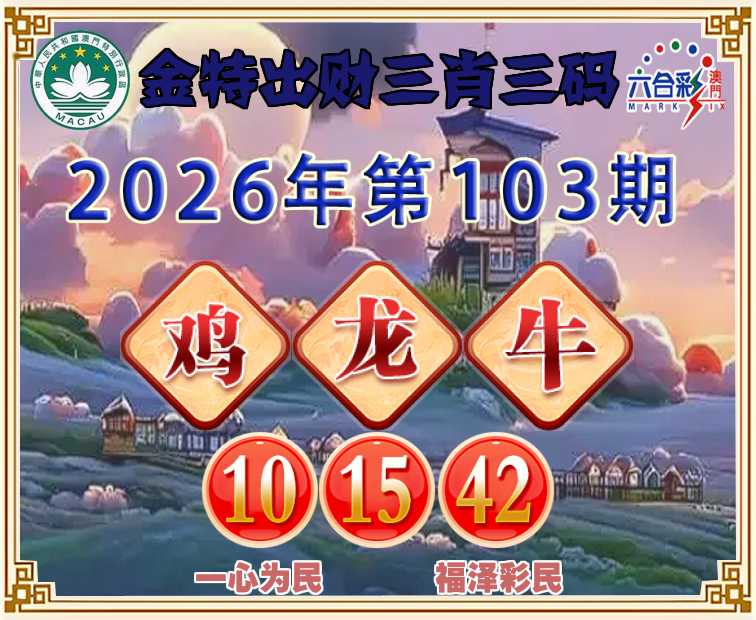 103期:【金特出财】 ♦️三肖三码♦️【鸡龙】【10.15.42】开:牛06