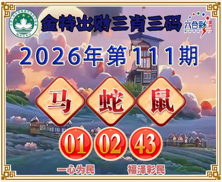 111期:【金特出财】 ♦️三肖三码♦️【蛇鼠】【01.02.43】开:马01