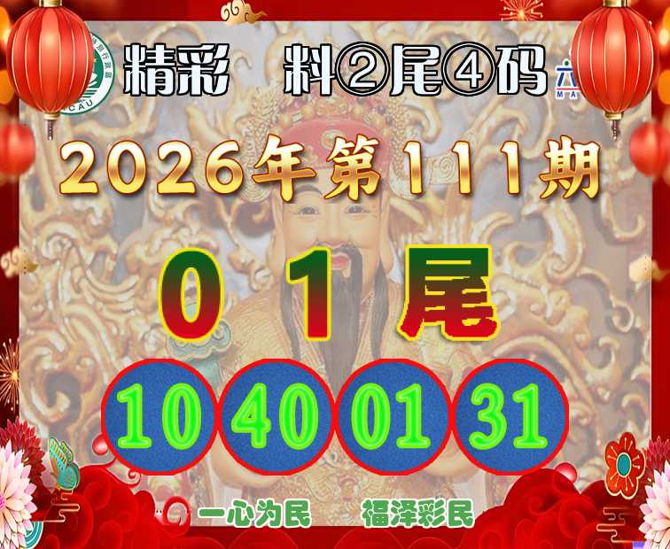 111期:【精彩馬料】 📙②尾④码📙【01尾主:10.40.01.31】开:01