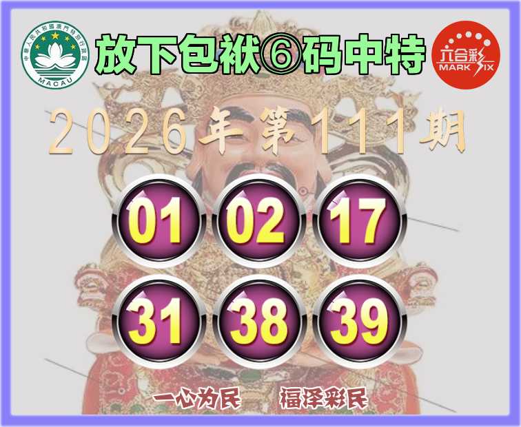111期:【放下包袱】 🌸⑥码中特🌸【01.02.17.31.38.39】开:01